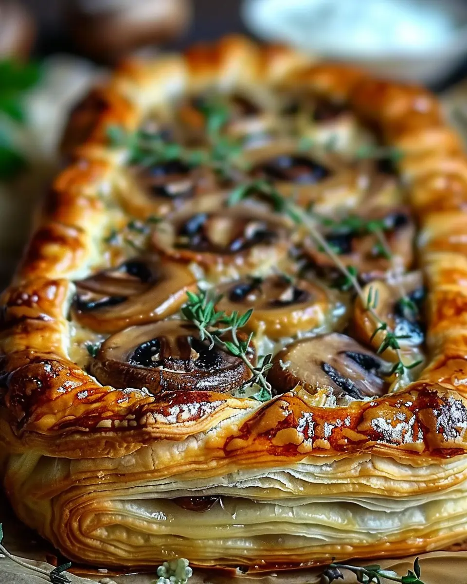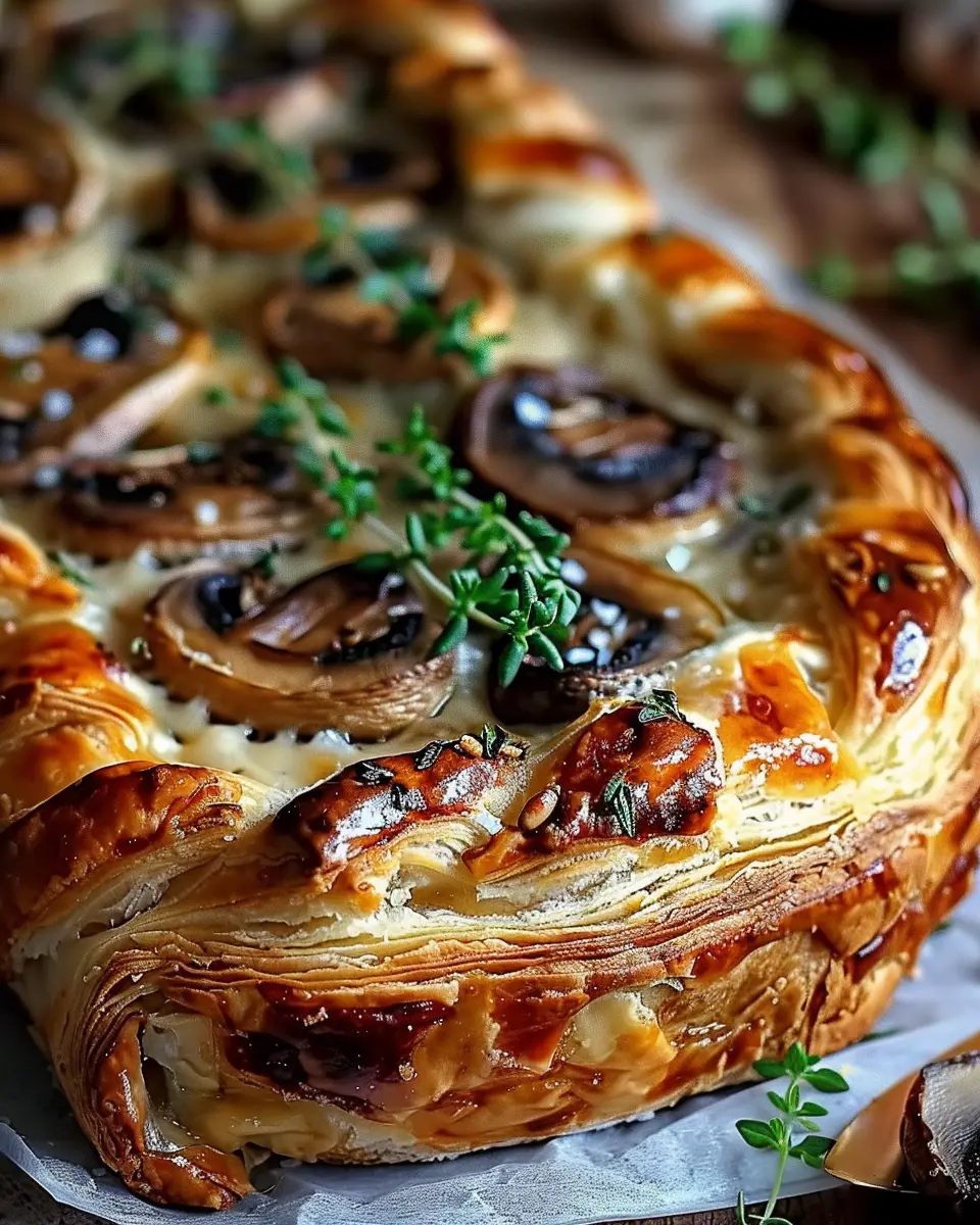 A delicious and comforting savory pastry filled with mushrooms and Gruyère cheese, perfect for any occasion.