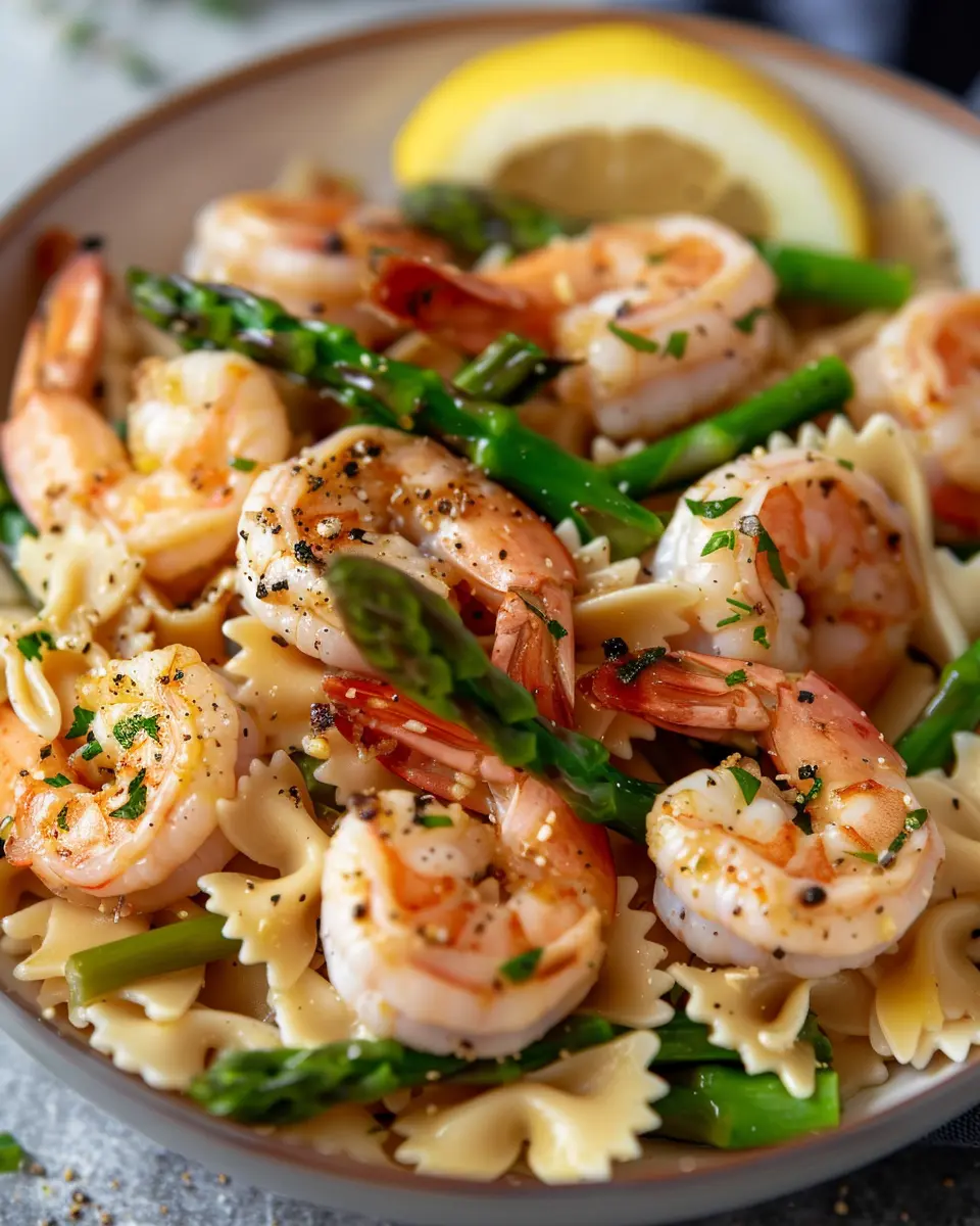 Enjoy a quick and delicious dinner with this shrimp and asparagus farfalle recipe that is sure to please!