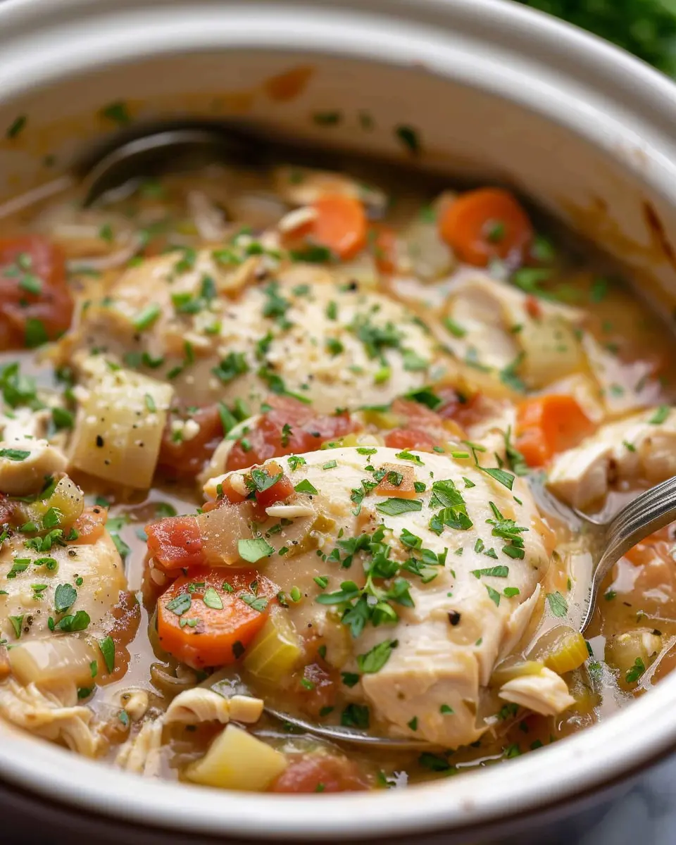 Delight in the creamy, savory goodness of Slow Cooker Garlic Parmesan Chicken Stew, a comforting dish that’s perfect for any occasion.