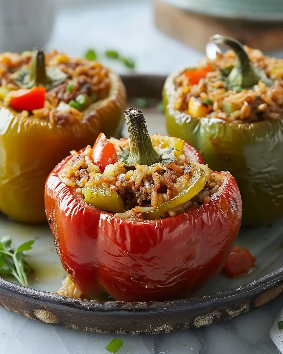 PrintSlow Cooker Stuffed Peppers: Easy Recipe with Turkey Bacon and Beef