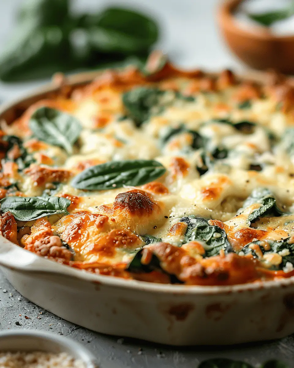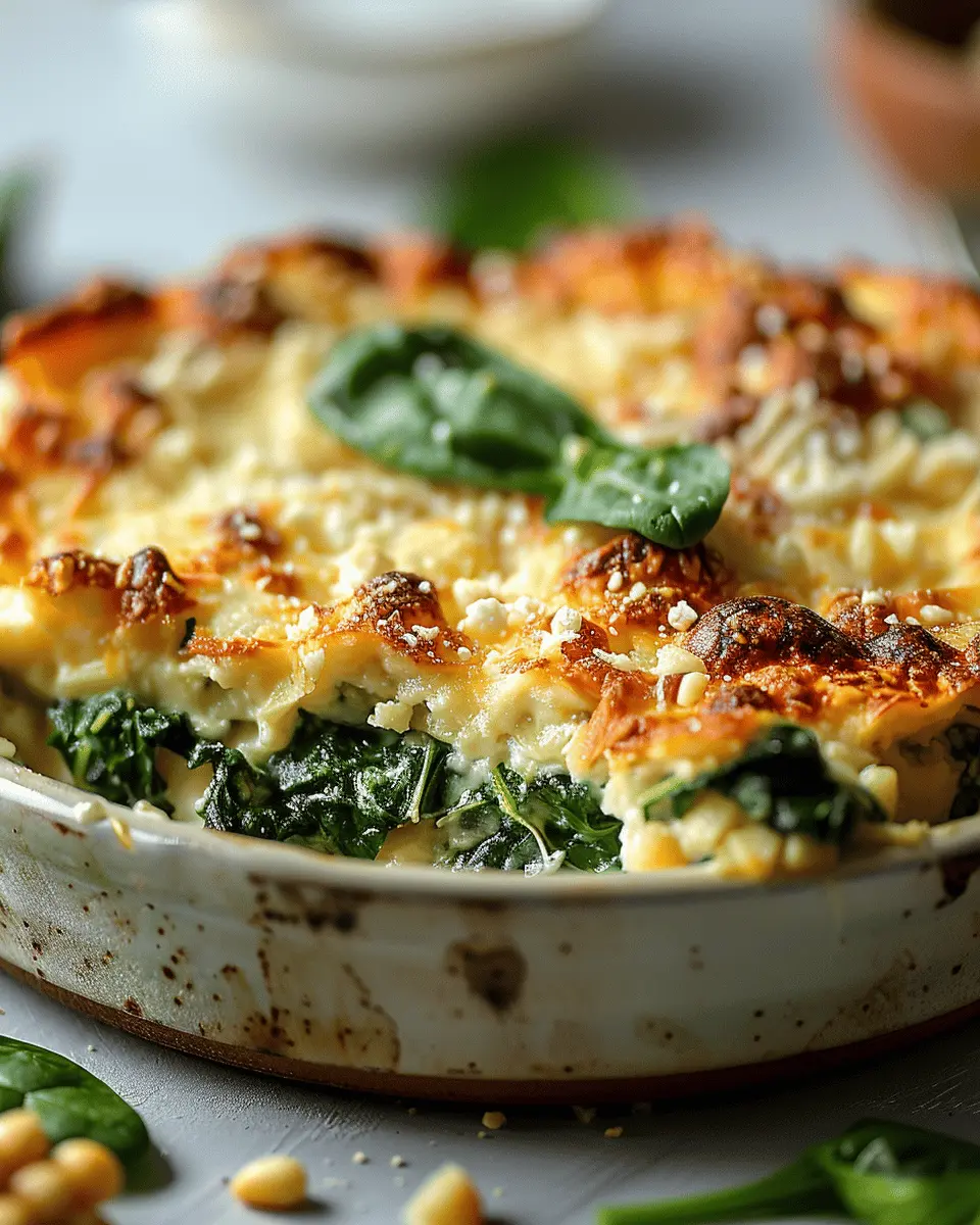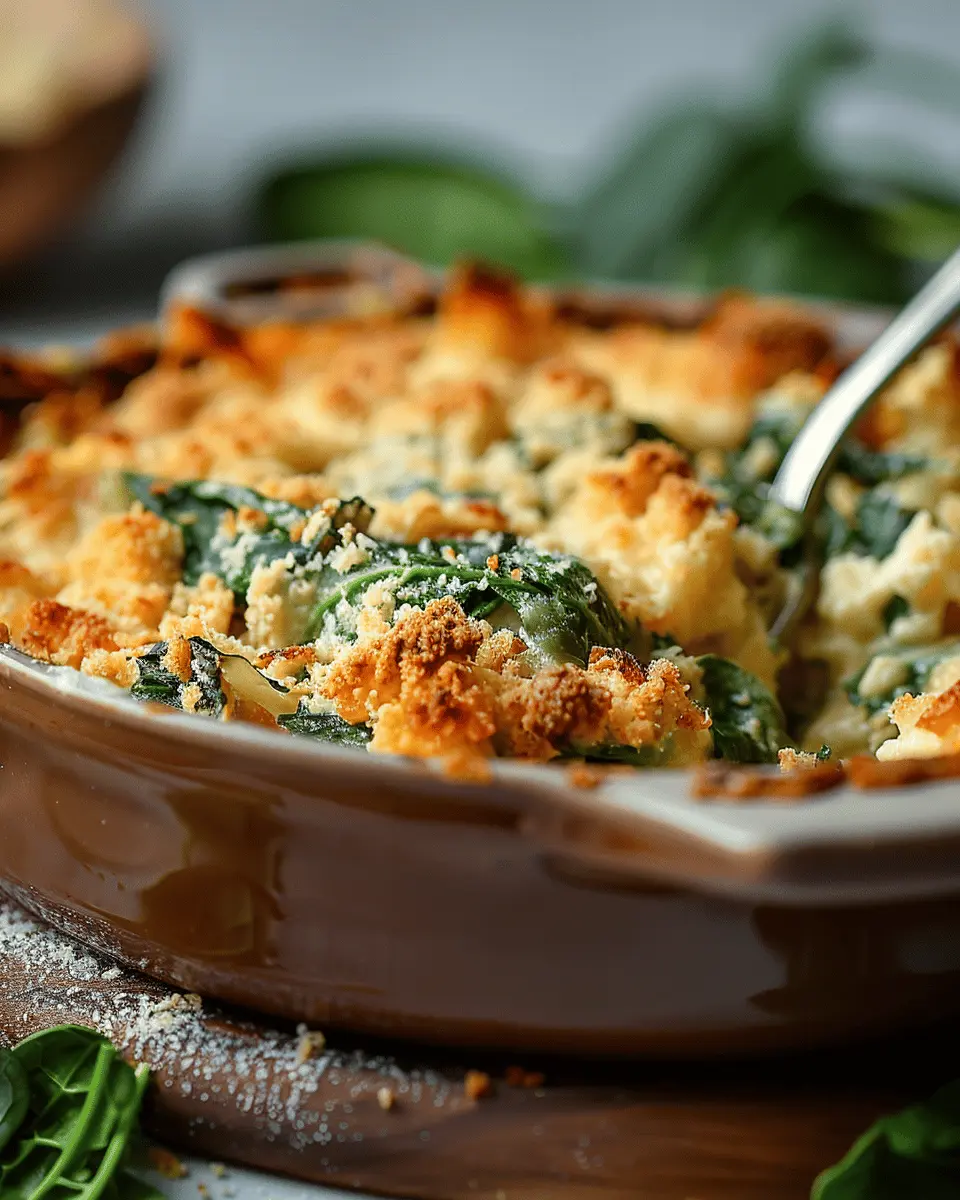 - Layered Presentation: Serve slices of the casserole on a bed of sautéed spinach for an elegant look that showcases the dish.