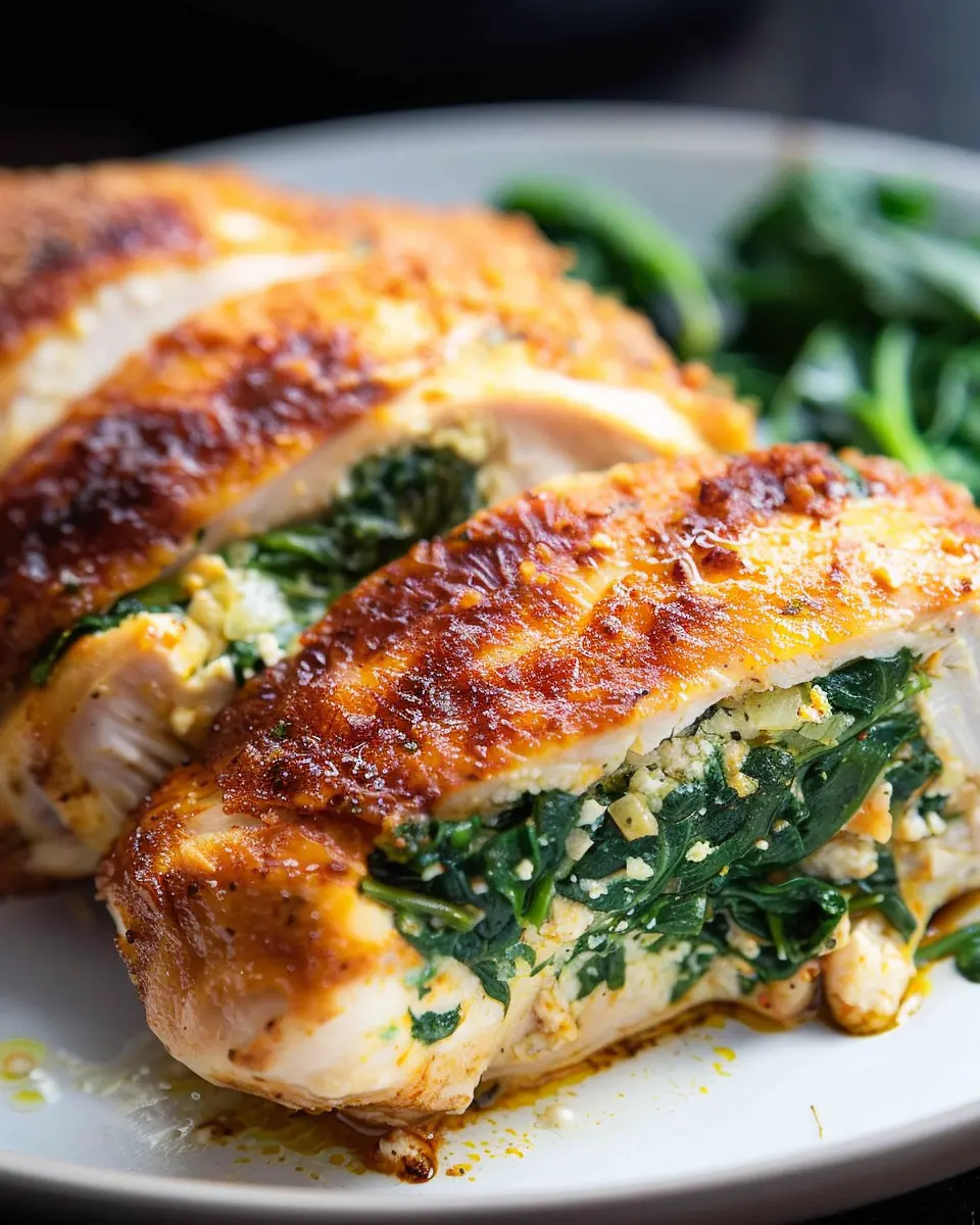 Cooking the perfect spinach stuffed chicken requires a little finesse to keep the meat juicy and tender. Start by brining your chicken in a simple saltwater solution for about 30 minutes; this will help it retain moisture during cooking. Additionally, using a meat thermometer is key—cook your chicken to an internal temperature of 165°F to ensure juiciness while avoiding overcooking. Also, consider searing the chicken in a hot pan before baking to lock in flavors.