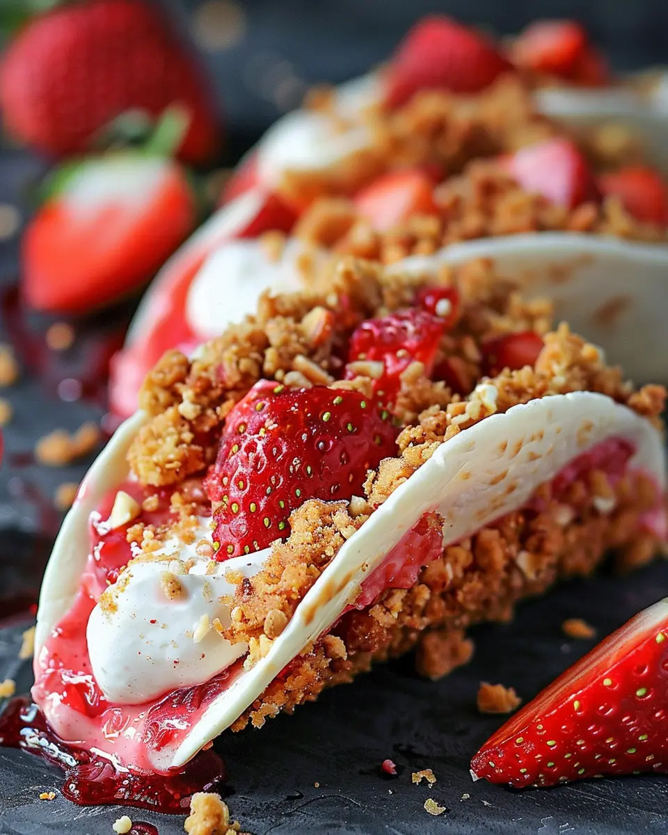 Indulge in these delicious Strawberry Crunch Cheesecake Tacos, a perfect treat for any dessert lover.