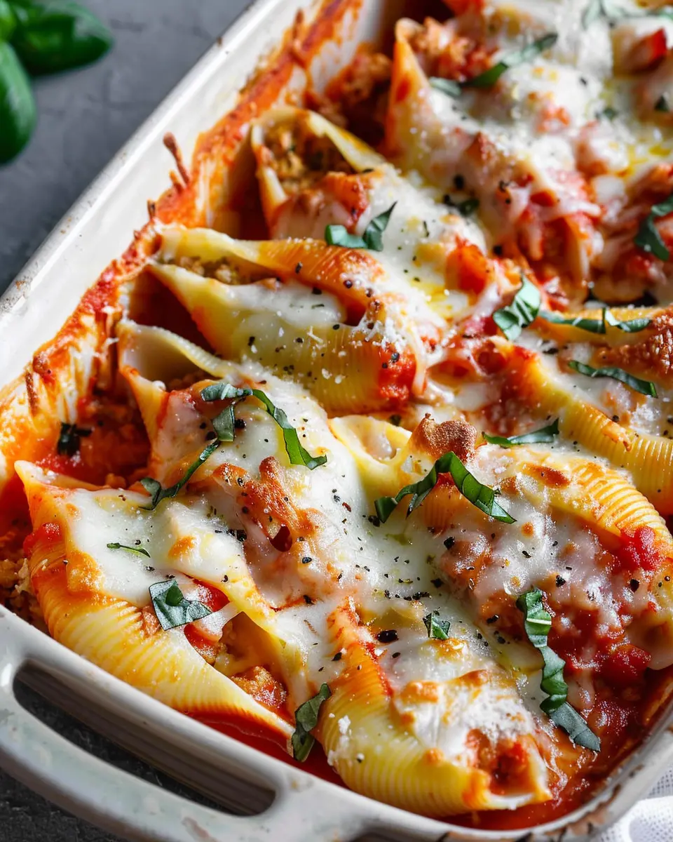 For the meat lovers out there, consider creating a hearty filling using ground beef or even turkey bacon for a lighter touch. Mixing cooked meat with cheese and herbs creates a satisfying and protein-packed meal. You might also experiment with chicken ham for a unique twist. Remember to add a layer of marinara sauce on top before baking—this will keep the shells moist and enhance the overall flavor!