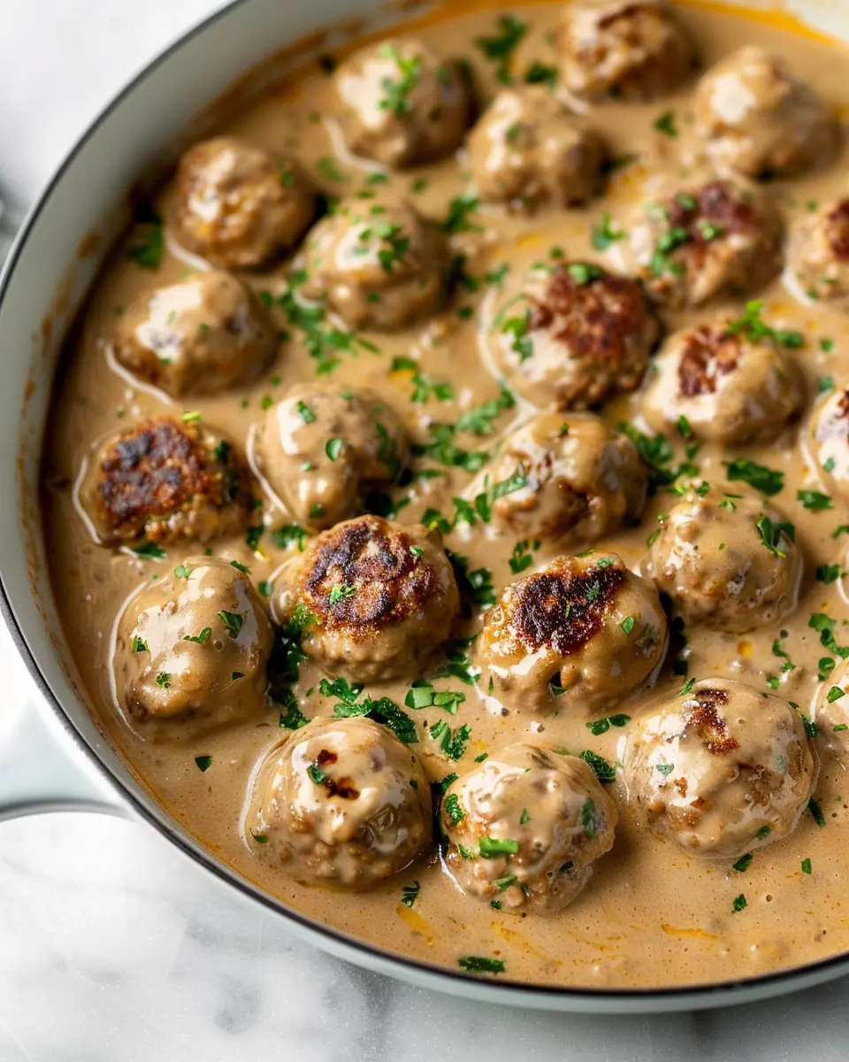 To achieve that irresistible creamy sauce, start by making a roux with butter and flour, then gradually whisk in beef broth. For added richness, incorporate a splash of heavy cream or sour cream at the end; this balance creates that signature silky texture. If you’re looking for extra flavor, consider adding a hint of Dijon mustard or some soy sauce. This will elevate the Swedish meatballs experience!