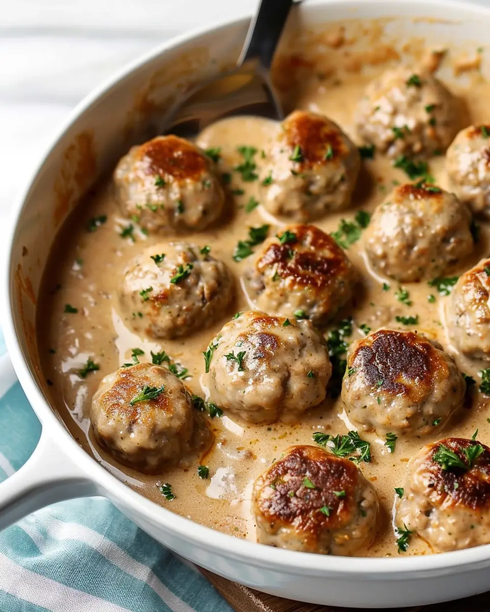 While the meatballs are browning, it’s time to whip up that classic creamy sauce. In the same skillet, remove excess grease, leaving about a tablespoon for flavor. Add more onion and cook until soft. Then, combine: