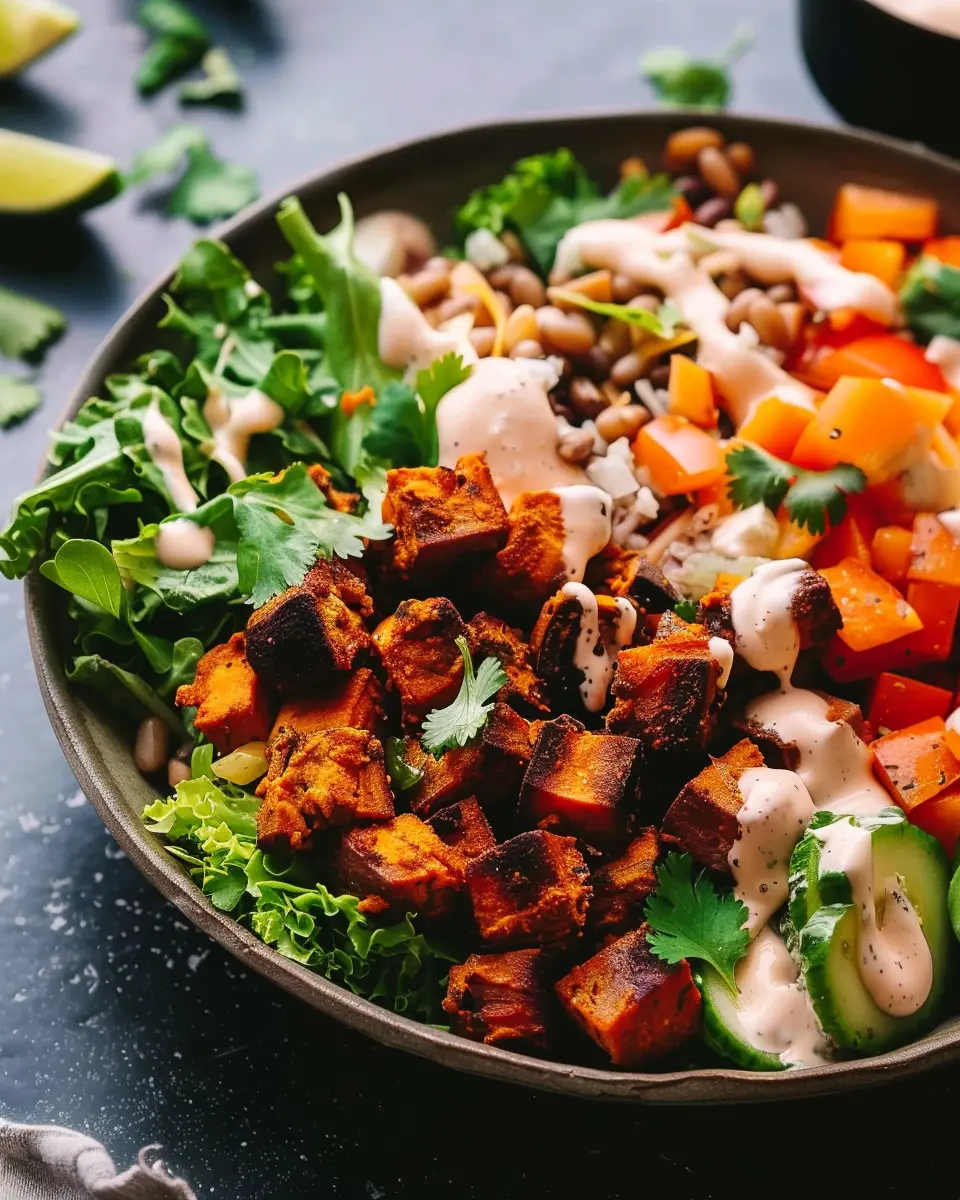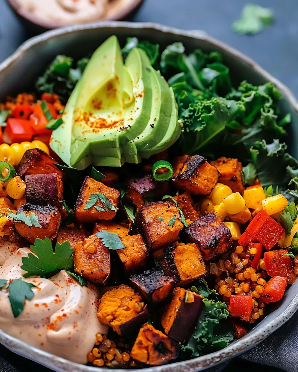 A delightful and nutritious sweet potato bowl that brings together hearty flavors and healthy ingredients.