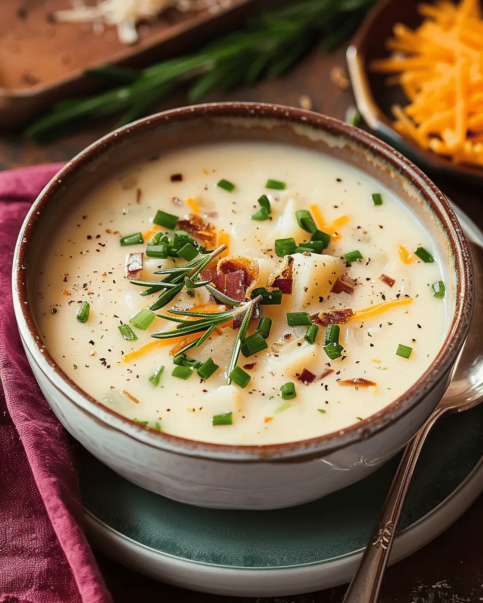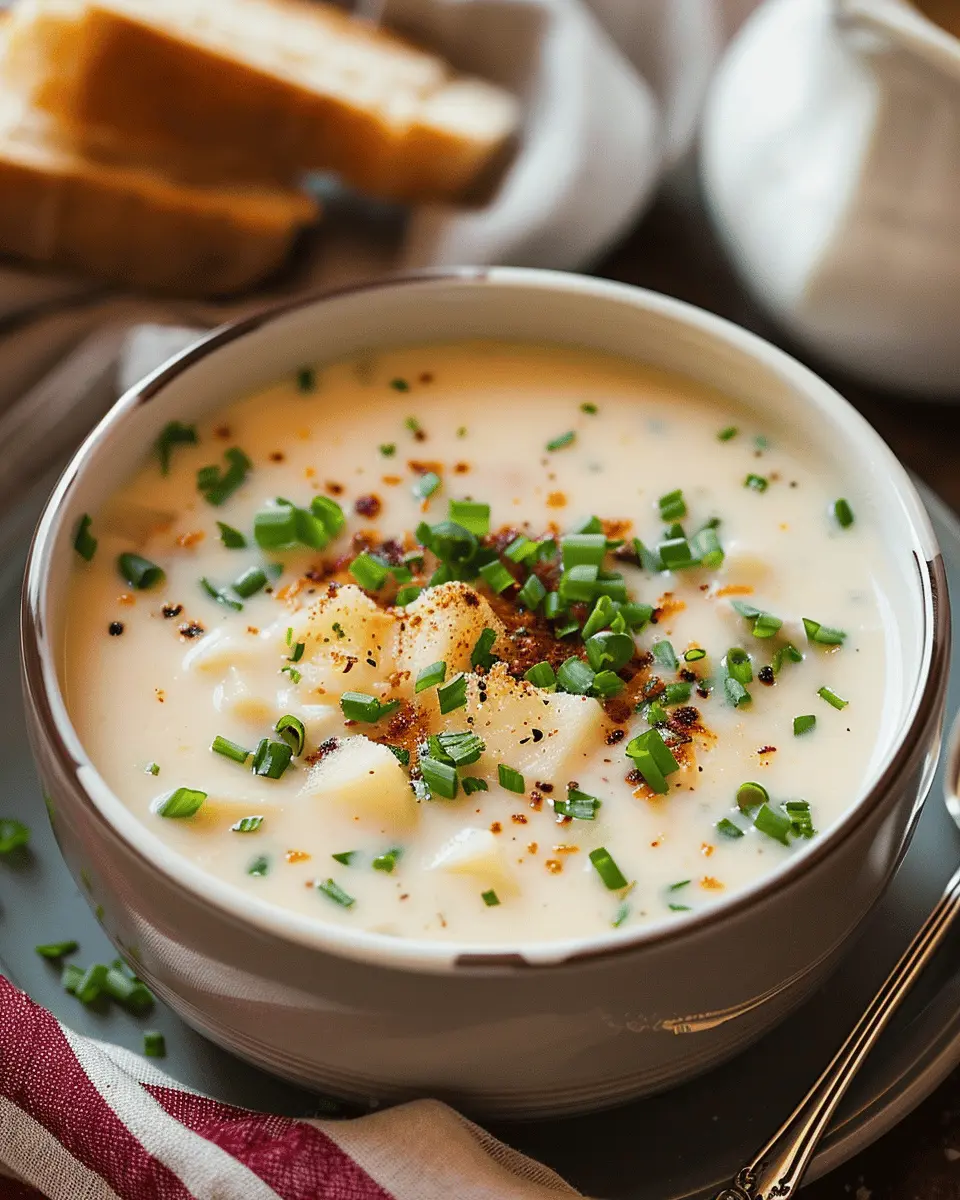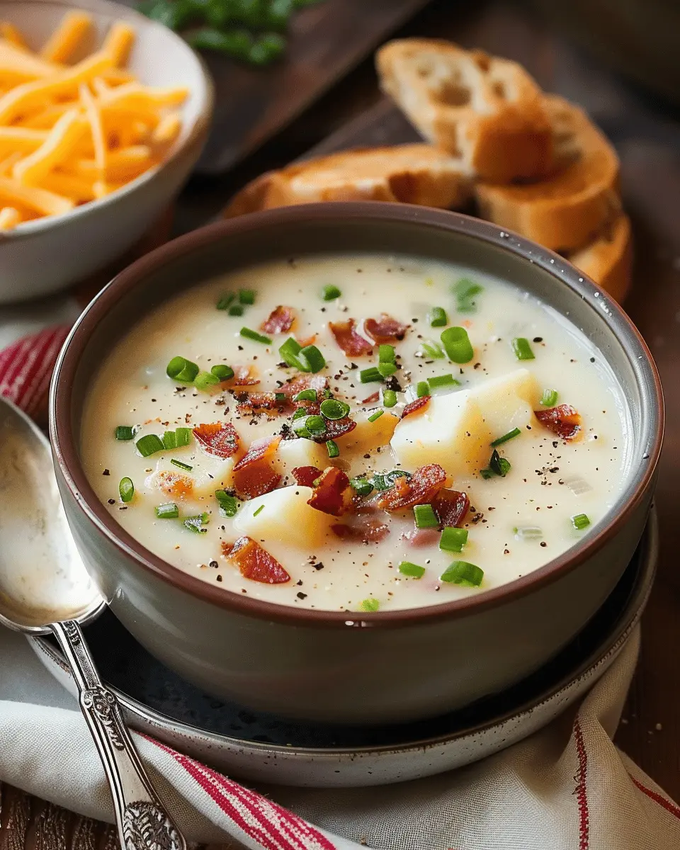 What’s your favorite way to serve creamy potato soup? Share it in the comments! 🌟