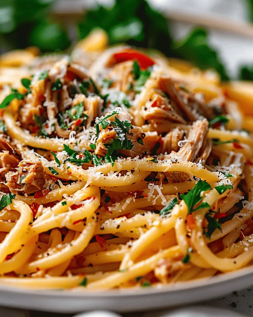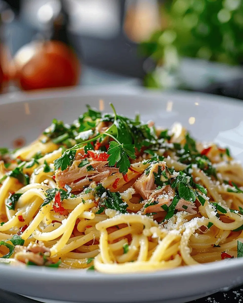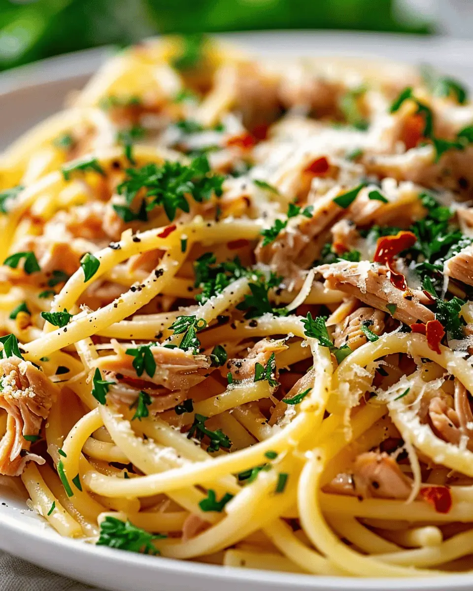 Presentation matters! To plate your tuna pasta, twirl a serving onto a plate using tongs for an elegant look. Garnish with a sprinkle of freshly chopped parsley or a dash of chili flakes for a pop of color. You could even add a wedge of lemon on the side for a zesty squeeze right before eating. A well-plated dish not only tastes good but is a delight to the eyes—perfect for impressing friends during a casual dinner gathering.