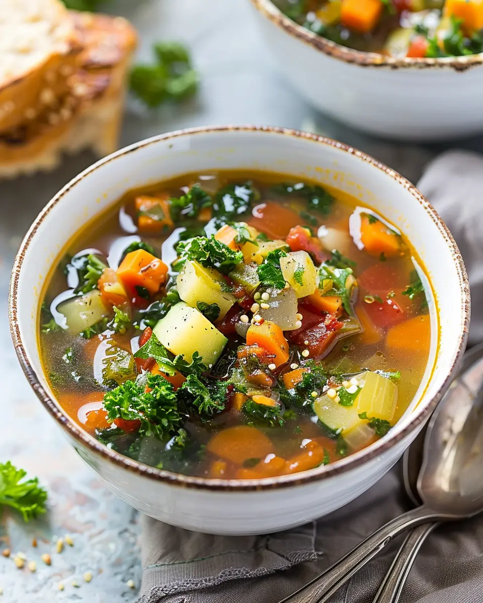 This wholesome vegetable soup recipe is perfect for a cozy dinner and pairs beautifully with a slice of crusty bread. Bon appétit!